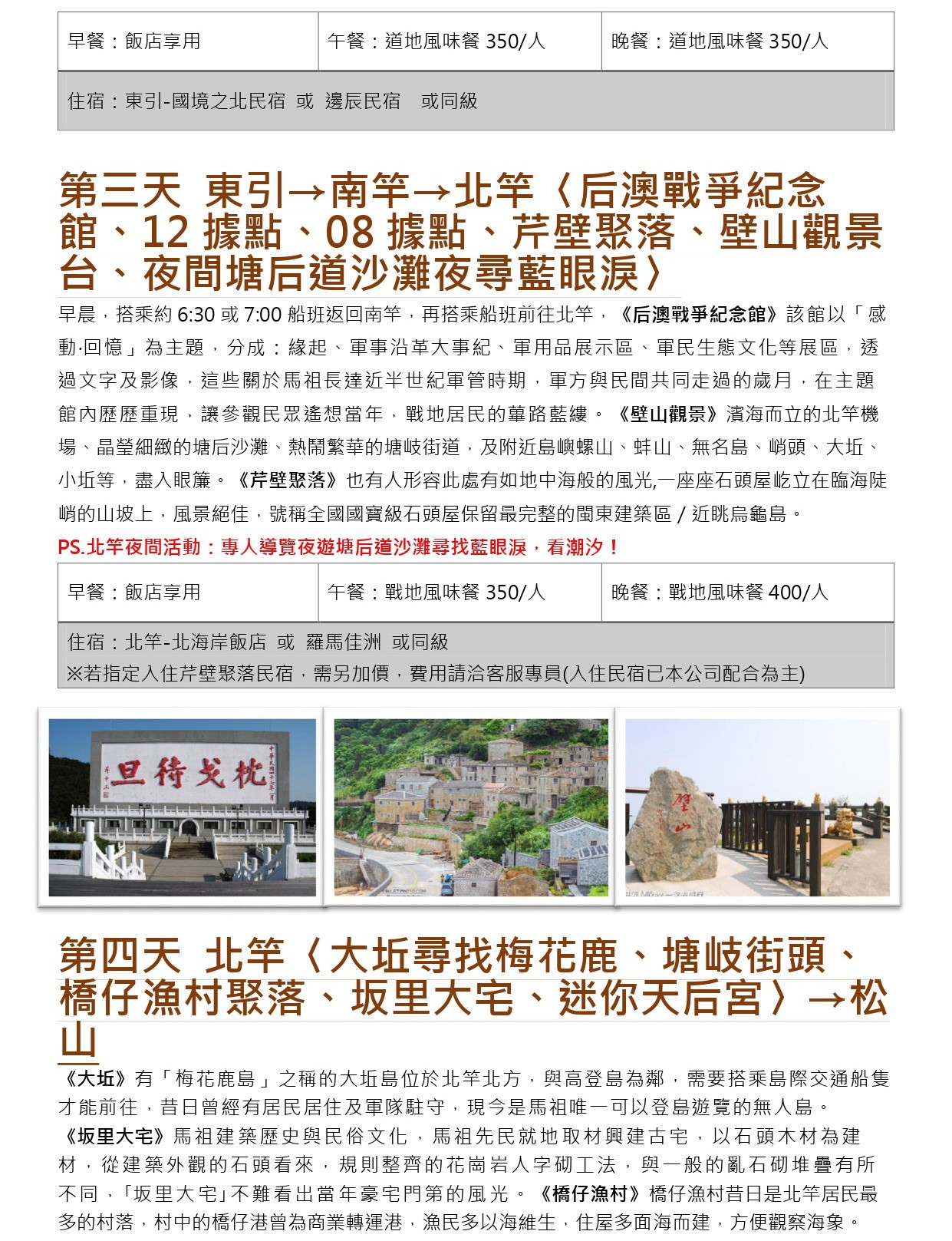 台中出發 → 馬祖4天包車遊~4人同行優惠價$17900/人